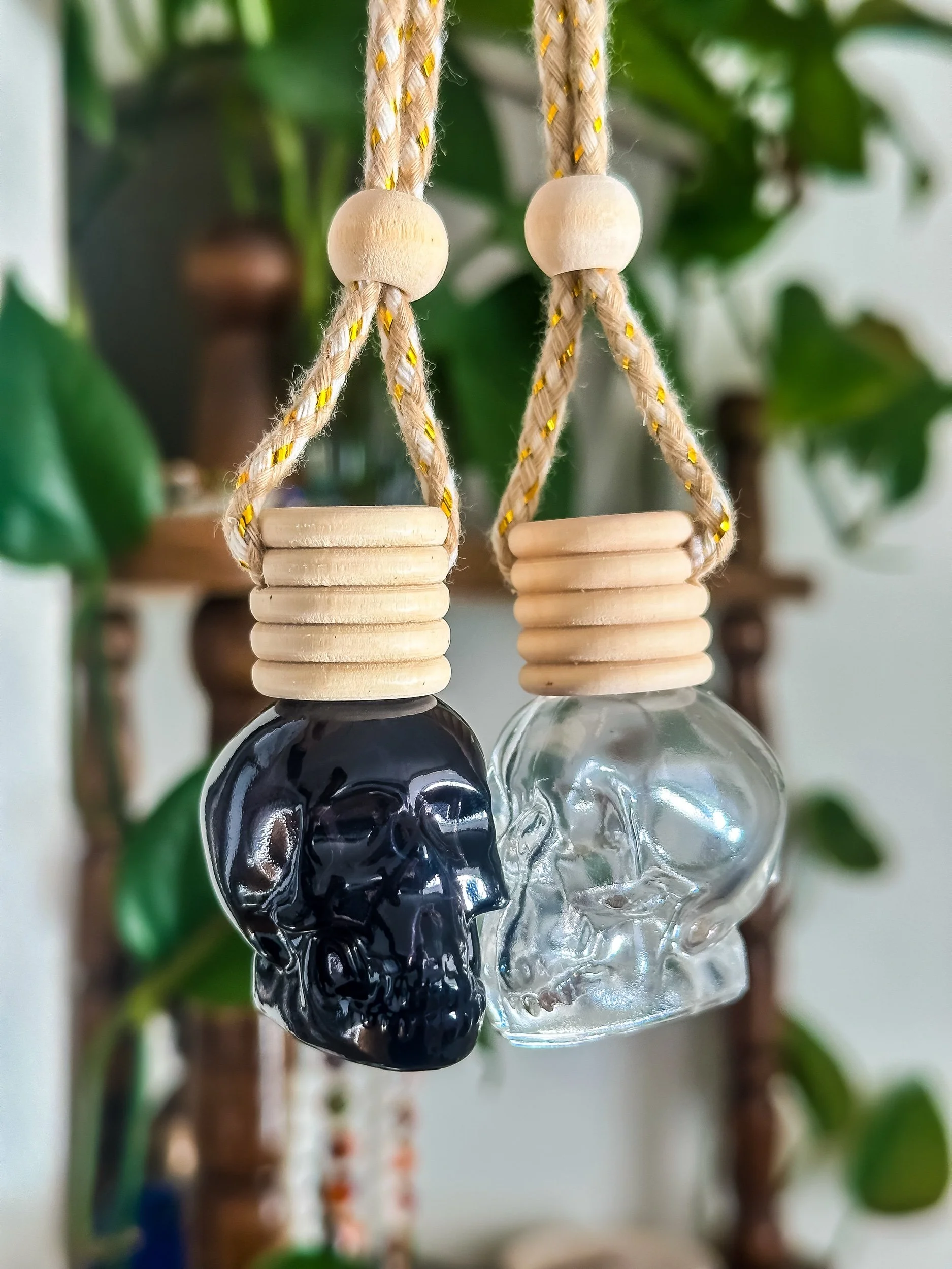 Our hanging skull diffusers are a great way to fill your space with your favorite scent, without the flame! Choose from black or clear color options. Each skull holds approximately 10 ml of fragrance. You can hang these in your car, your closet, or any place you’d like to have scented.